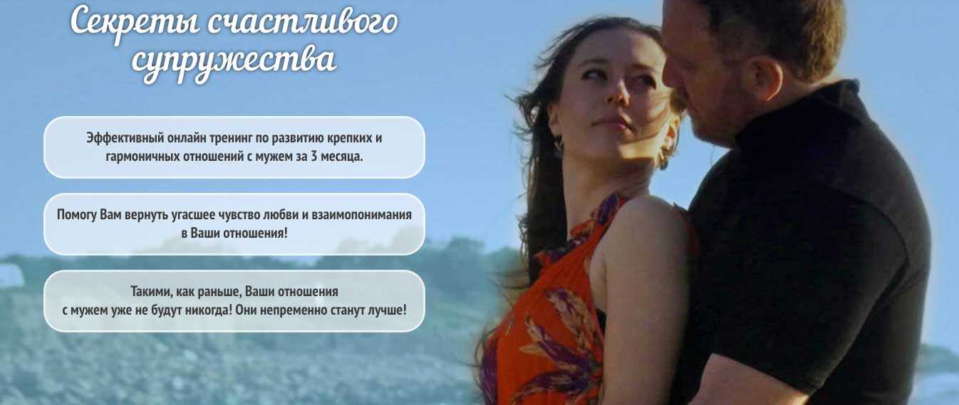 Первое занятие состоится 03.04.16 в 11.00 МСК (будут высылаться также записи занятий). Кто знает, может быть, именно вы, и примите в нем участие, может быть, именно вам судьба подготовила такой сюрприз. В жизни нет случайностей, и если вам «случайно» попалась эта статья, и вы дочитали ее до конца, то значит, именно вам и именно сейчас нужно сделать это упражнение, и возможно даже именно вам нужно принять участие в тренинге, который кардинально улучшит вашу жизнь и отношения с мужем.