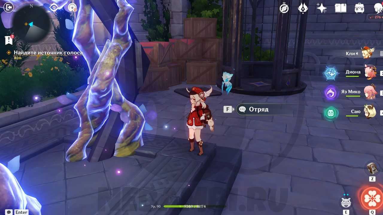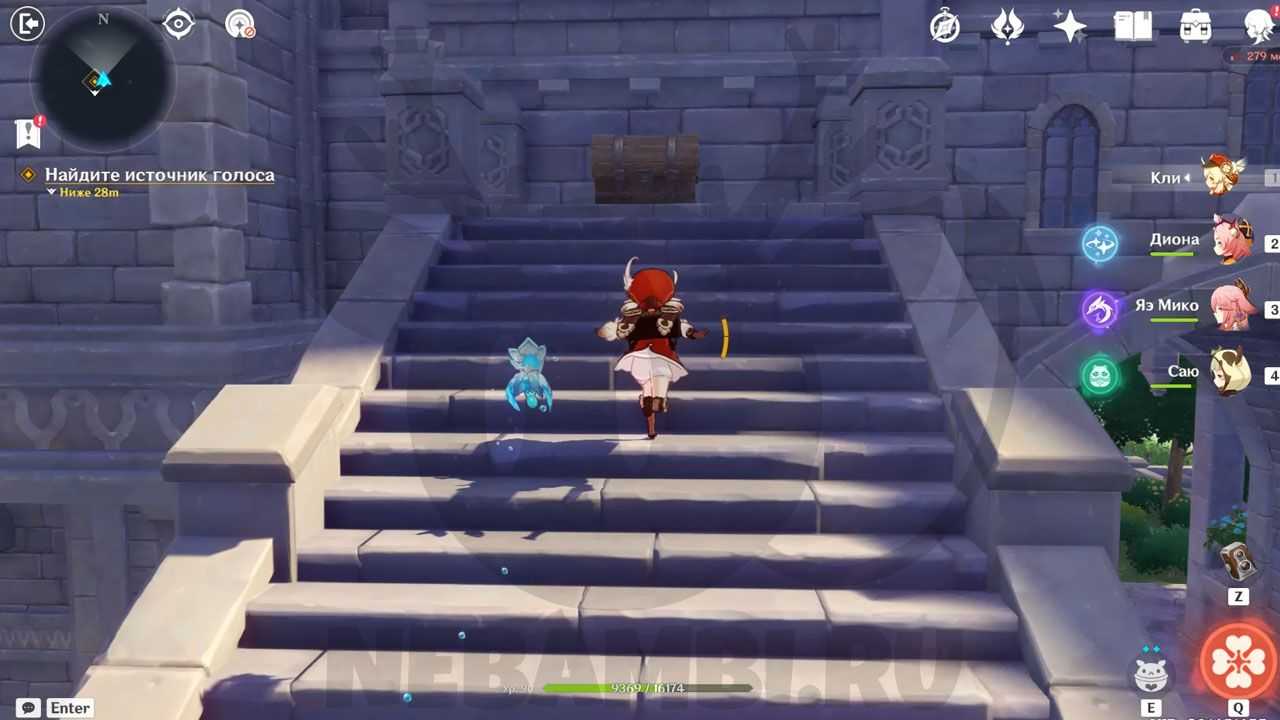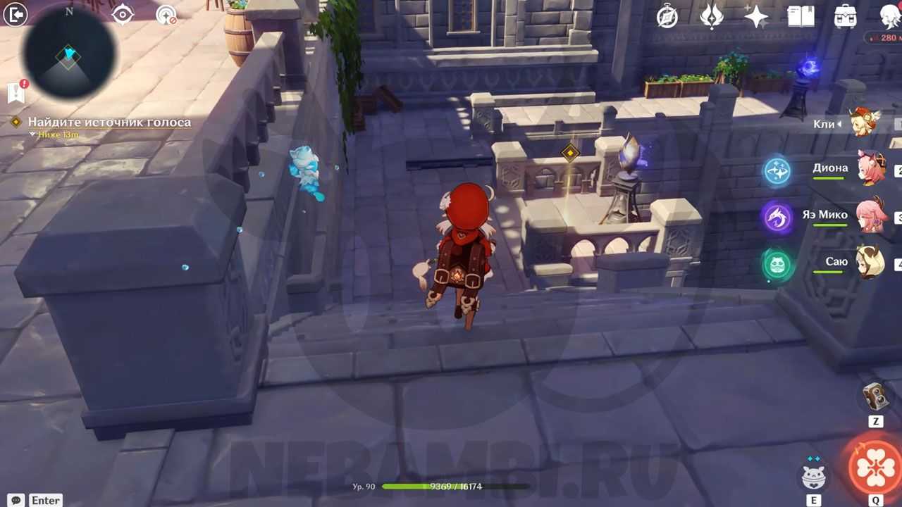 Сразу после телепортации начнется катсцена. Паймон найдет странный пруд и предположит, что через него можно войти в мир грез. Первой в воду нырнет Мона, а за ней – и остальные. Группа телепортируется в первый квестовый данж.